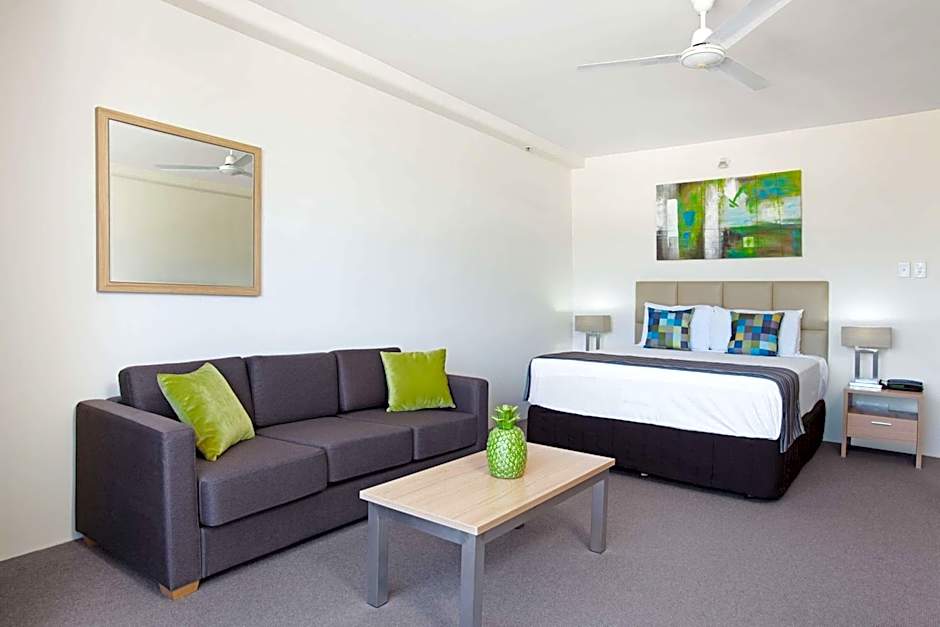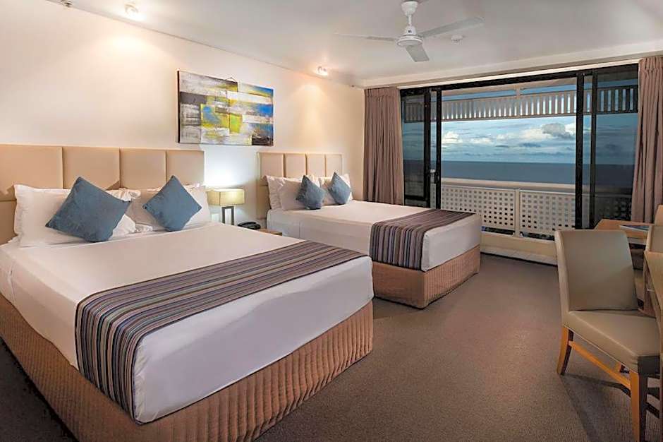 This room features a private balcony overlooking the Coral Sea and Cairns Esplanade.